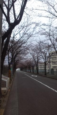 坂を下りると団地の桜並木