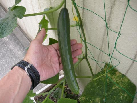 今日はそのきゅうりを1本収穫し、味見してみた。
