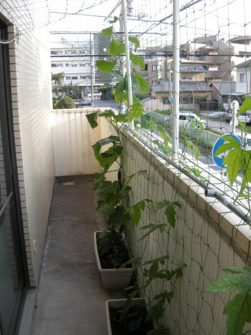 例年ベランダでゴーヤ栽培をしてきたが、今年はミニトマトときゅうりを追加することとした。