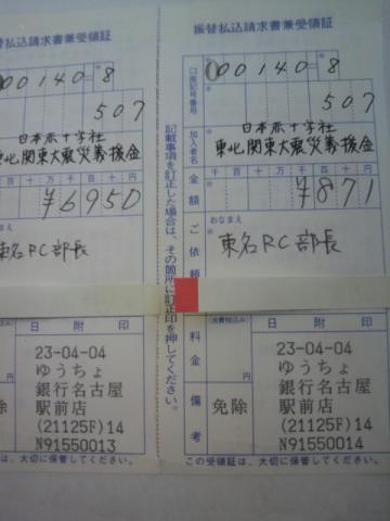 腹いっぱいになった後、お暇な。。。ではなく、被災地を心配する男子4人でチャリティーボーリング大会(ストライク100円、スペア50円等・・・)をし、6,950円集まりました(写真2)