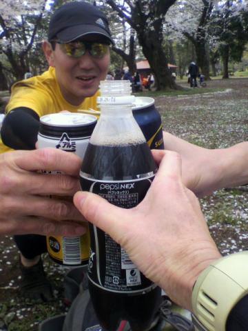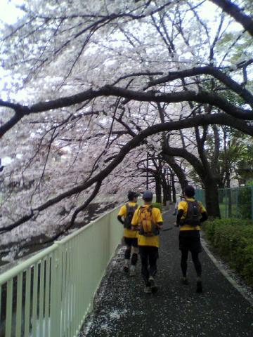 でもって、神田川の沸き立つような桜のトンネルを皆で感嘆の声を上げながら、のんびりジョグしておしまい♪