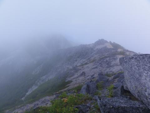 森林限界を越えたあたりから、霧と強風でどんどん寒くなる。