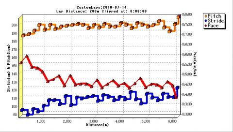 裸足ラン+雨中ランで、ご近所の警戒レベルが一段階引き上げられたかもしれない(^^;)。メトロノームは使用せず、ピッチは180から200くらいになった。ピッチが200だと、ストライドが狭くてもペースが結構速くなった。水ぶくれにならないように、ソフトな着地を意識した。汗と雨が垂れてきて目にしみた。帽子は忘れてはいけない。6kmで終了。
