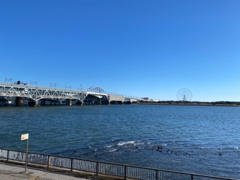 ハーフのスタート見送って10kmの選手はスタート前だけ会って若洲からの折り返し地点に走って移動。